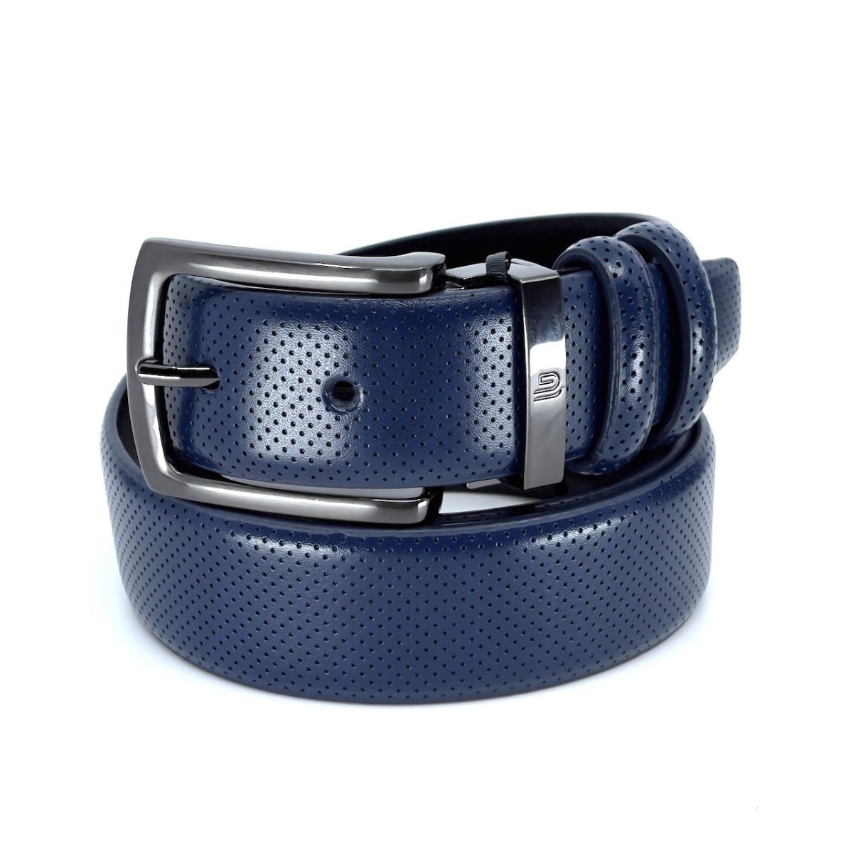 Δερμάτινη σχεδιαστική ζώνη legend soft touch με τέλεια εμφάνιση, σε χρώμα μπλε, με αυτόματη μαύρη ποιοτική αγκράφα, με χαραγμένο το λογότυπο legend.