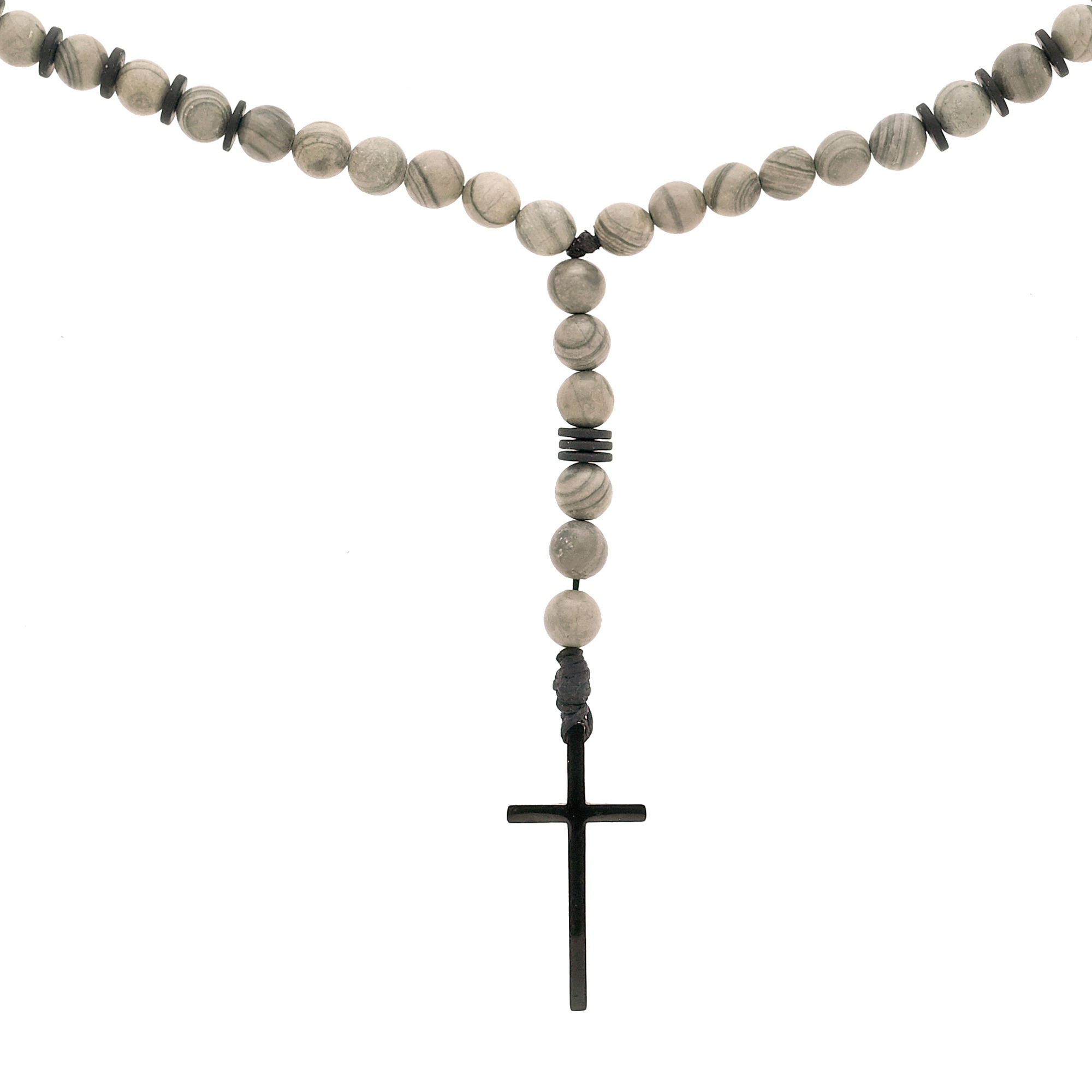 Ανδρικό χειροποίητο ροζάριο με ημιπολύτιμους λίθους αχάτη(6mm) και ροδέλα αιματίτη μαύρη(6mm).