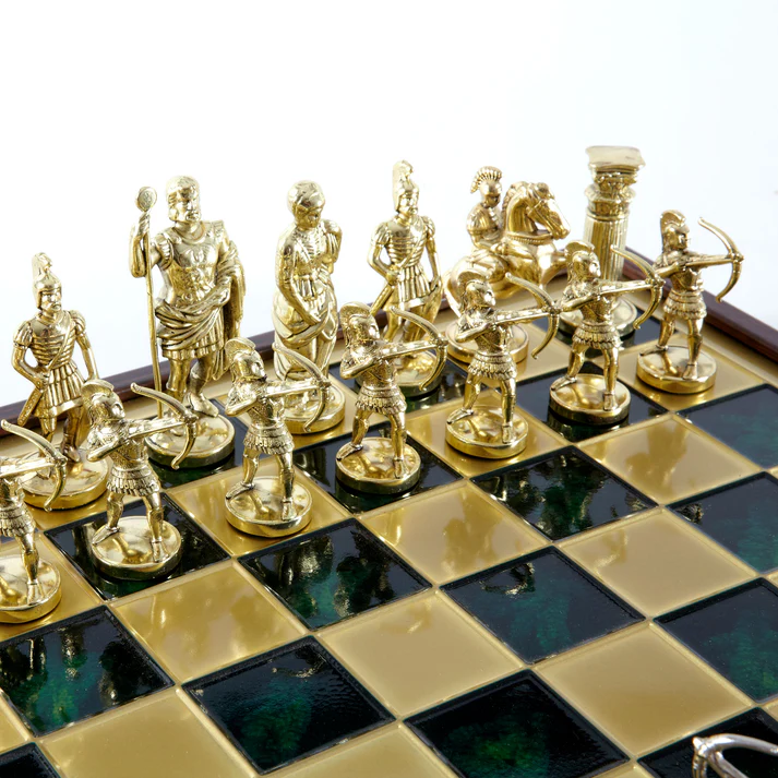 Ξεκινήστε ένα θρυλικό ταξίδι με το Χειροποίητο σετ σκάκι ελληνική μυθολογία. Αυτό το εξαιρετικό σετ, διαστάσεων 20×20 cm, αναδεικνύει το μεγαλείο της αρχαίας Ελλάδας με σχολαστικά σχεδιασμένους χρυσούς και ασημένιους σκακιστές σε συνδυασμό με μια μπρούντζινη σκακιέρα.