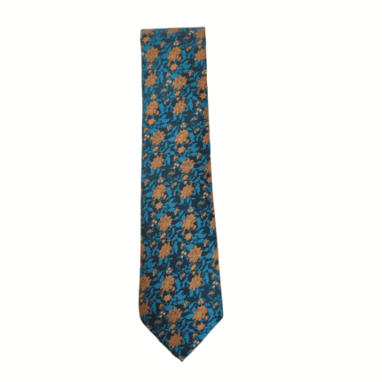 Γραβάτα μετάξι μπλε πετρόλ-χρυσή